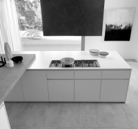 La optimización del espacio, la estructura de 84 cm de altura con zócalo de 6 cm, permite equipar la estructura con dos cajones y un cesto, a los que se les puede aplicar el sistema de apertura G-Line. Esto aumenta la funcionalidad de la cocina y el efecto estético.