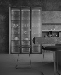 El espacio se organiza de manera óptima en las columnas Ghost equipadas, con accesorios multifuncionales retráctiles. Ghost es el innovador mecanismo de apertura y cierre de maxi puertas de toda altura que transforman el espacio de la cocina en una pared lineal.