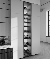 La vitrina deluxe con fondo retroiluminado 'Solaris' y vinoteca equipada es una solución que combina estilo y funcionalidad, creando un efecto elegante y sofisticado.