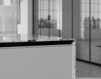 Las puertas con perfil perimetral 'ultra slim', fabricadas en MDF lacado, ofrecen un diseño que combina ligereza visual y solidez estructural.
