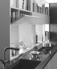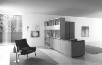 La structure H84 anthracite avec surface inrayable munie de doubles étagères dans chaque base est renforcées par un profil particulier en aluminium sur la partie frontale ; elle est élégante et garantit la résistance à des parties internes tout en augmentant de 20% le volume par rapport aux dimensions standards.