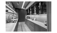 Réalisé grâce à une solide collaboration, ce projet représente une étape importante pour Floritelli sur la scène internationale. La cuisine combine harmonieusement les modèles iconiques Kea, Ares et Slim, avec un îlot central Ares fini en Strong Oxidised Steel et des meubles hauts Slim en chêne teinté. Le projet est complété par une cuisine humide fonctionnelle du modèle Kea, avec d'élégantes armoires en verre fumé et des dosserets en chêne rétro-éclairés, qui ajoutent de la profondeur et de la sophistication à la pièce.