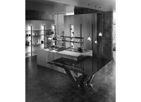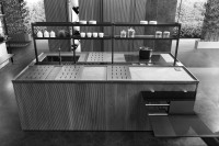 L’isola bifacciale spicca per l’austerità del piano monoblocco.