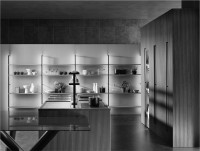 Il sistema 84 prevede differenti tipologie di apertura anta, con profili alluminio inseriti, particolari fresature ergonomiche e laccature tutta superficie. Dettagli integrati ai sistemi D/G Line di cui diventano elementi funzionali.